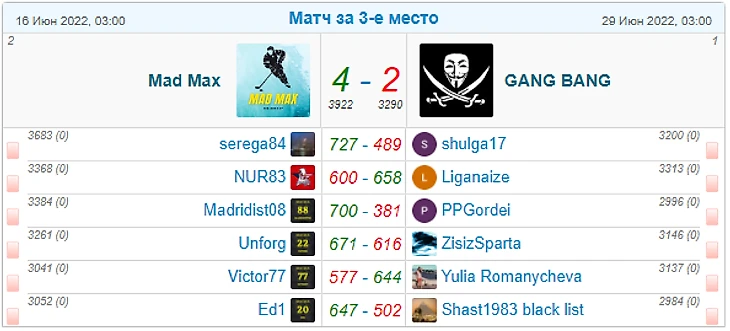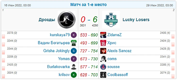 Как и в финале лиги НХЛ, здесь тоже сказалось преимущество в заменах у Lucky Losers. Умение грамотно распределить замены по всему турниру - ключ к победе в турнире Кубка Стэнли.