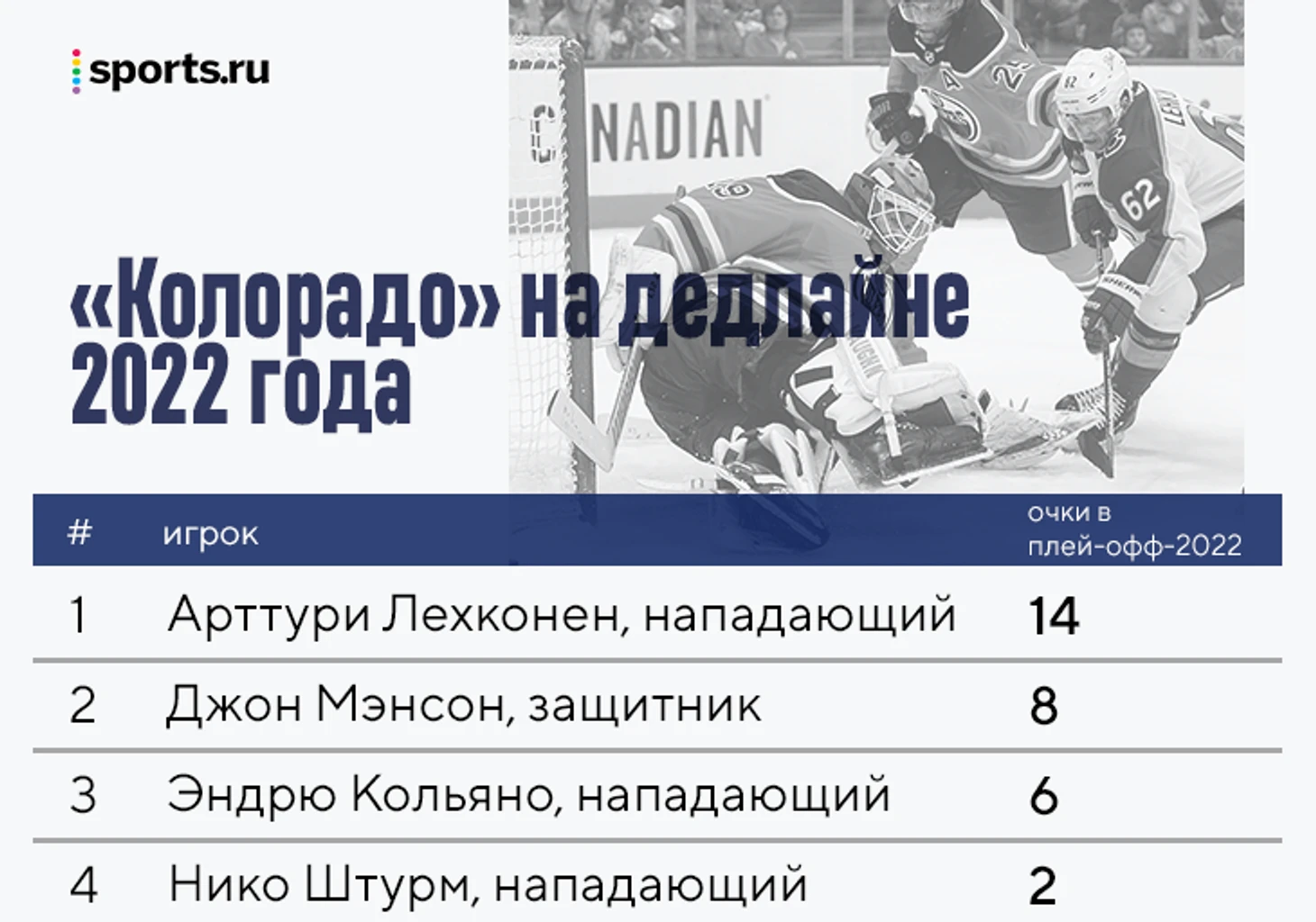 У меня открыты два состава «Колорадо» – 2020 и 2022 годов. Они похожи в пиковых областях, то есть там одни и те же лидеры, но во втором – гораздо больше опыта. Ну, например, вместо Никиты Задорова в нем есть Джош Мэнсон. И так – сразу на нескольких позициях.