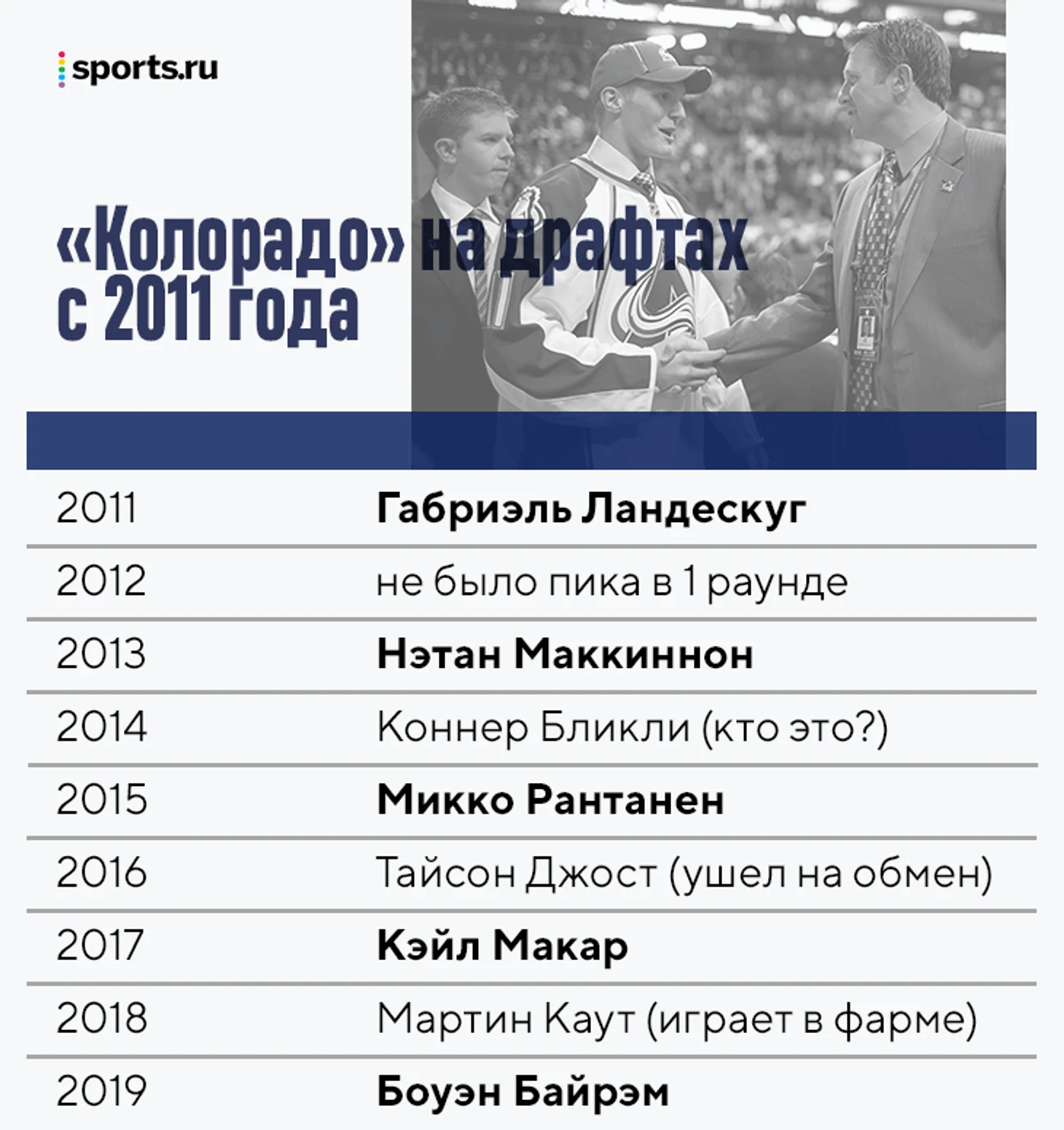 Мне кажется, историю этого чемпионства уместно отсчитывать с лета-2011, когда «Колорадо» вышел на драфт со вторым выбором и взял шведа Габриэля Ландескуга. Да, в 2009-м «Эвс» удачно подбирали Мэтта Дюшена, но он, как мне кажется, не очень здорово вписывался в силовую манеру игры команды – и в 2017 году его обменяли в «Оттаву».