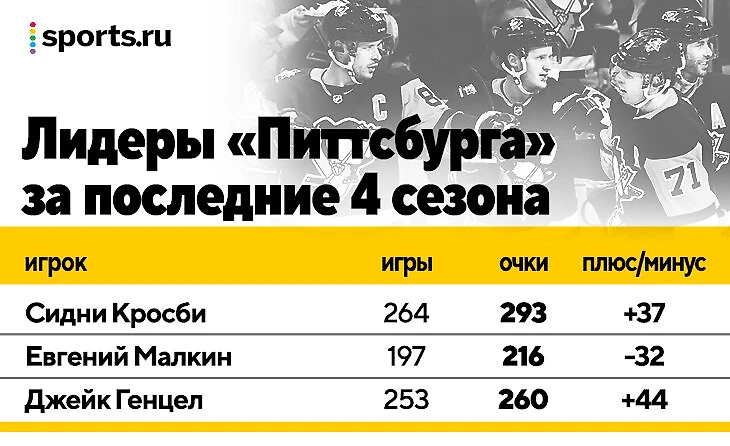 Нет сомнений, что Евгений – важный игрок в истории «Пингвинс». С ним клуб трижды брал Кубок Стэнли (2009, 2016, 2017), и казалось, что старая банда в лице Сидни Кросби, Криса Летанга и Малкина готова сделать еще один рывок и побороться за четвертый трофей. У Кросби контракт еще на три года, Летанг несколько дней назад подписал новый на шесть лет. Не без сложностей, но он получил свои 6 млн долларов в год.