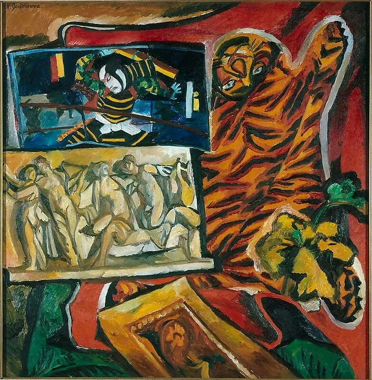 4. Наталья Гончарова (1881 – 1962), «Натюрморт с тигром» / «Амур». В одной из работ Наталья изобразила шкуру тигра, а тигр – это тотемное животное клуба из Хабаровска.