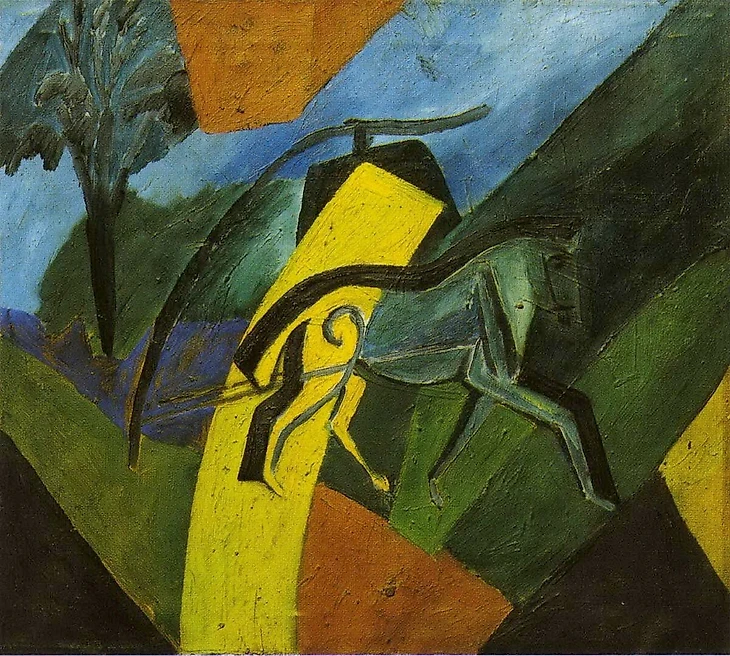 14. Давид Бурлюк (1882 – 1967), «Лошадь-молния» / «Салават Юлаев». Работа напоминает клубную эмблему.