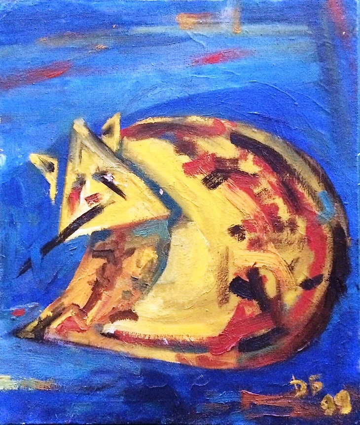 17. Автора этой работы найти сложно – если вы знаете, пишите в комментариях; на одном из сайтов она лежит с тегом «Белорусский авангард 1999г», «Кот» / «ХК Сочи». А что? На эмблеме клуба тоже своего рода желтый кот.