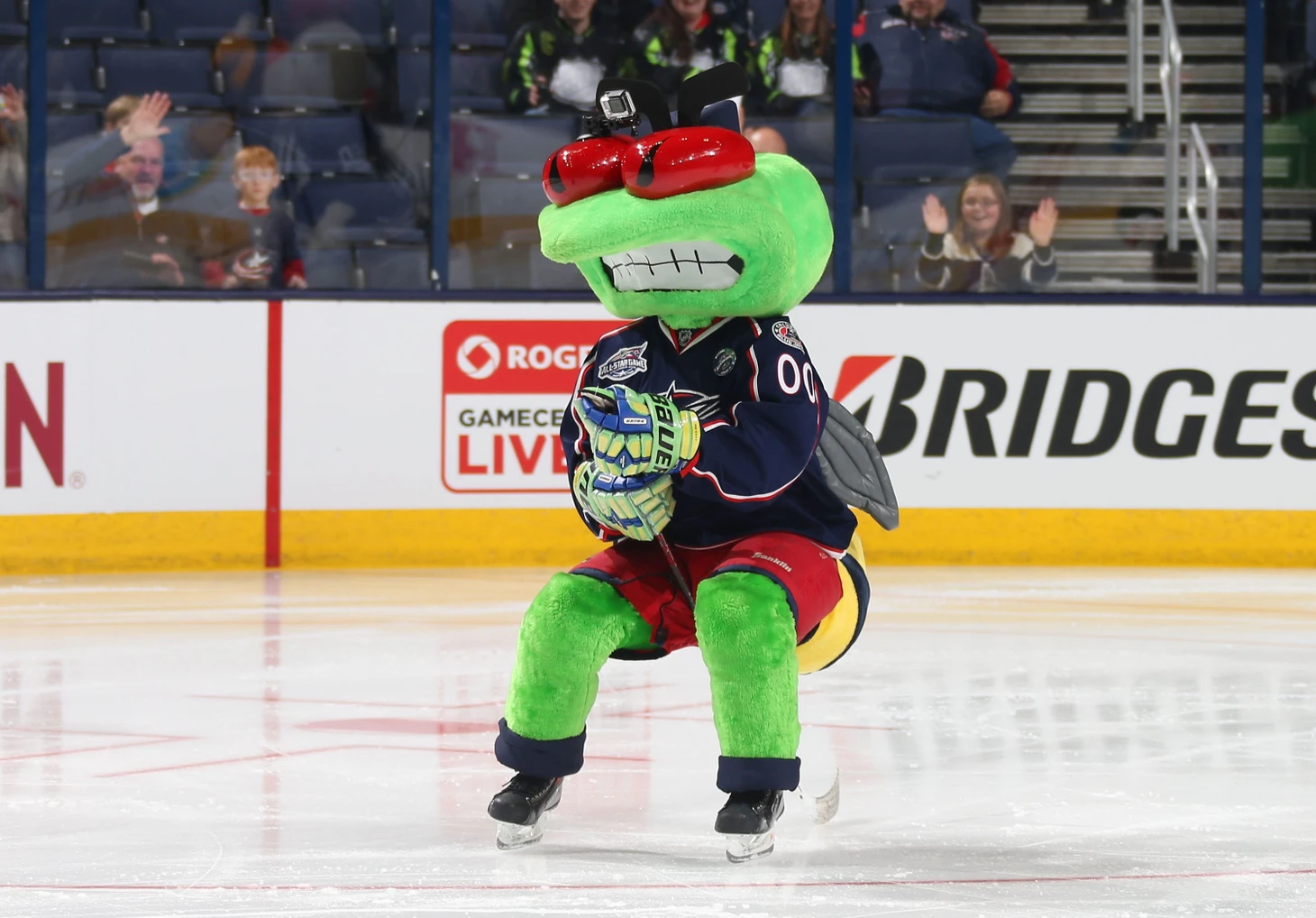 Перед играми он спускается на тросе из-под купола «Кибэнк-арены» под звуки рок-музыки, а также катается по льду на квадроцикле.