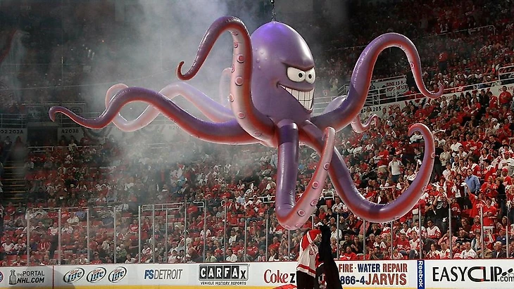 В 1952 году торговцы рыбы Пит и Джерри Кузимано бросили настоящего осьминога на лёд арены «Олимпия», восемь щупальцев осьминога символизировали восемь побед, которые необходимо было одержать в то время, чтобы завоевать Кубок Стэнли. С тех пор поклонники бросают осьминога на лёд для удачи.
