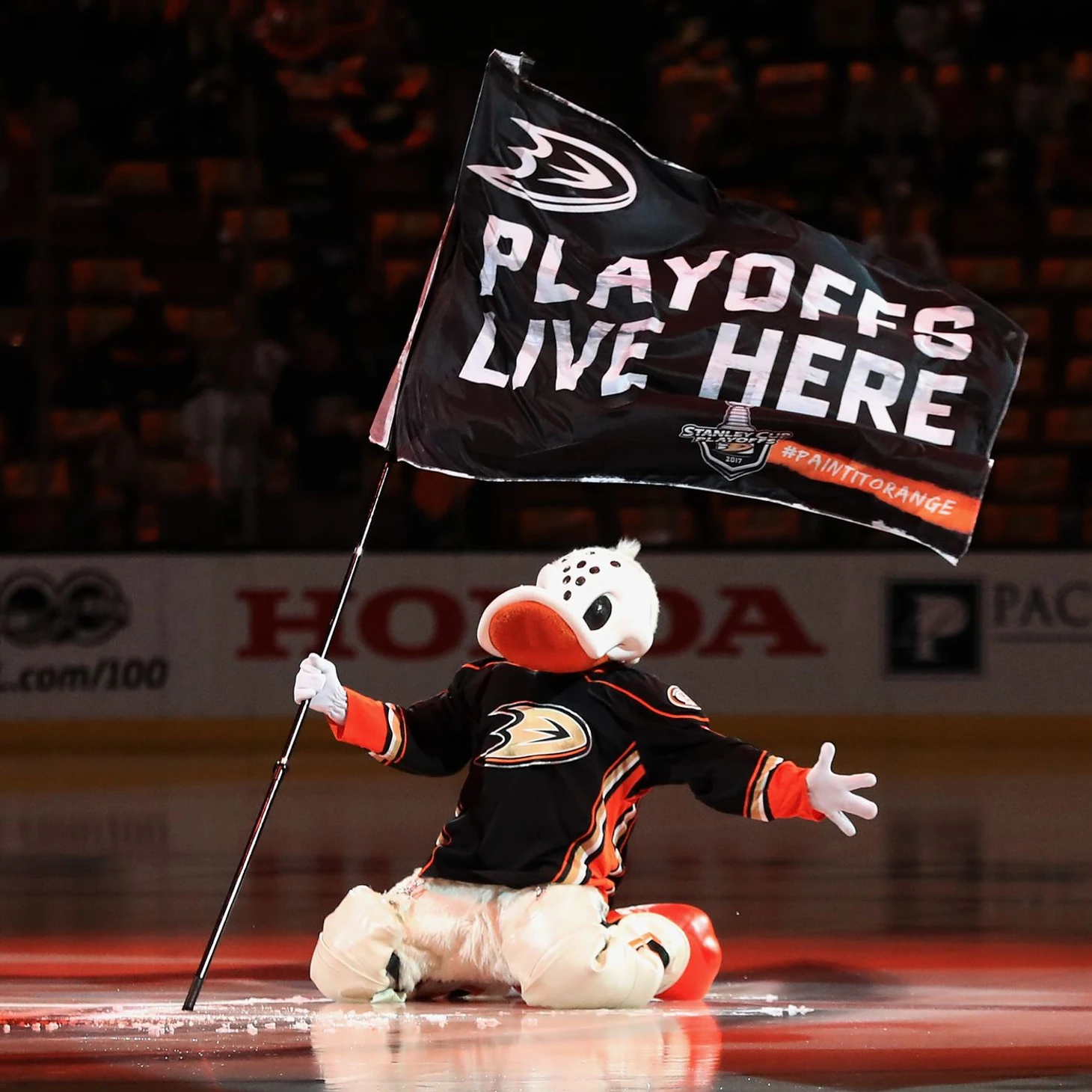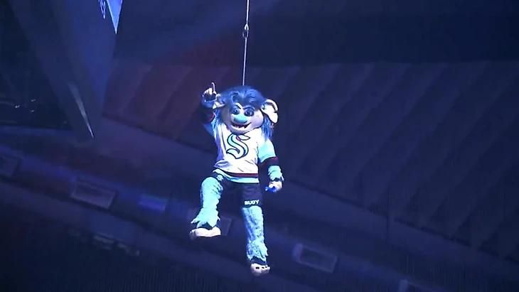 Уайлд Уинг — первый талисман в НХЛ, который спустится на лёд на тросе.