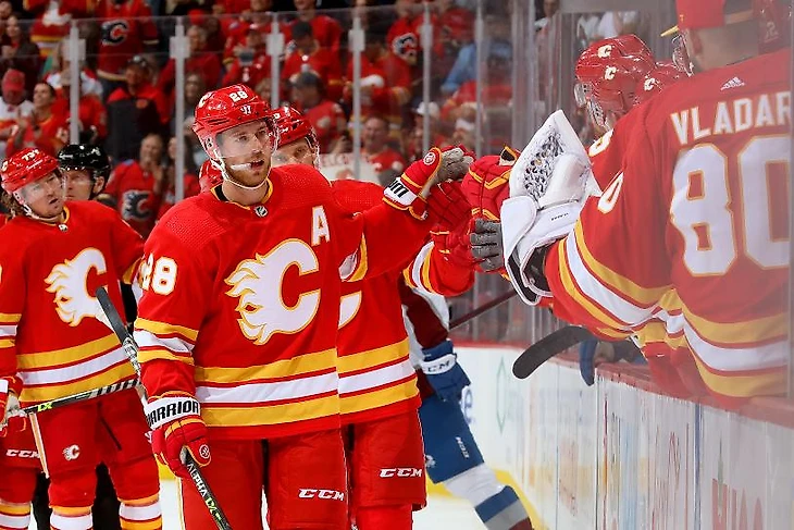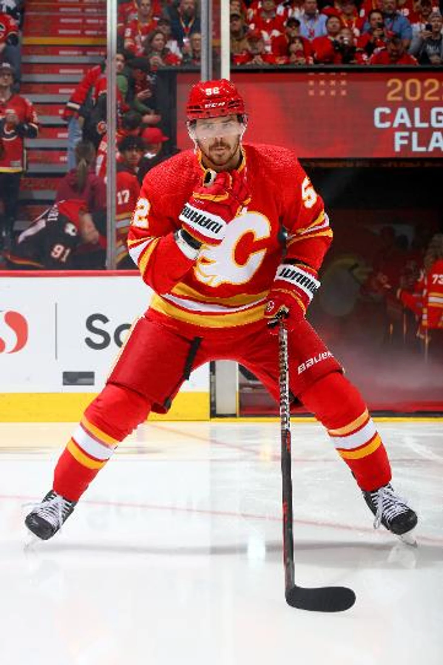 Dillon Dube - Nazem Kadri - Andrew Mangiapane; Noah Hanifin - Rasmus Andersson