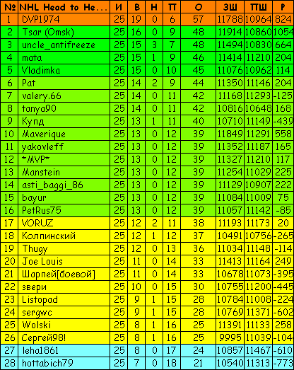 Результаты 25-го тура