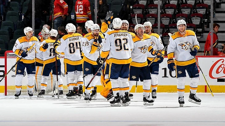 "Калгари Флэймз"-"Нэшвилл Предаторз" 1:4.Филип Форсберг и Мэтт Дюшен набрали по 2 очка (1+1),Кевин Ланкинен отразил 29 бросков.