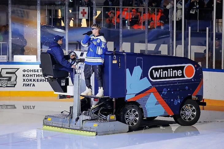 Вряд ли в его карьере еще были такие выступления – не просто на стадионе, а на работающей ледозаливочной машине вместо сцены.