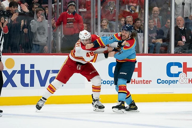 Первый принципиальный матч в сезоне для Калгари Флэймз (Битву за Альберту выносим за скобки, беря в скобки) - выезд в Майами к Пантерам из Флориды. С Маккензи Уигаром и Джонатаном Юбердо в составе. На противоположной стороне - Мэттью Ткачак.