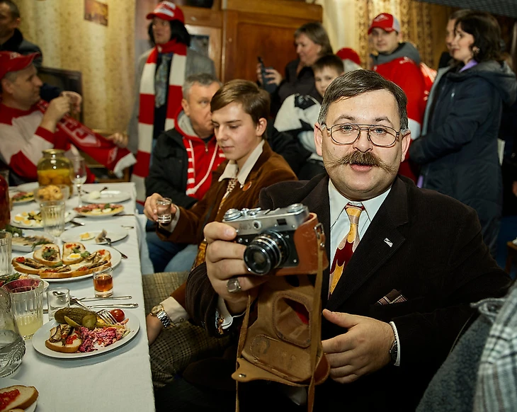 2. ХК «Спартак» разработал не только уникальную игровую форму, но и несколько видов разминочных свитеров – каждый из которых выполнен в дизайне на тему определённой эпохи в истории нашего родного города. Активное участие в разминке будет принимать и весь тренерский штаб ХК «Спартак», также облаченный во что-то крайне интересное!