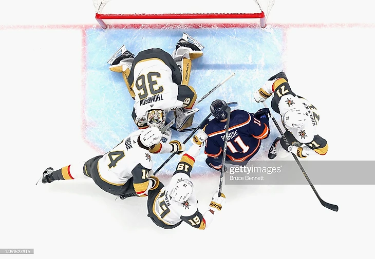 В-третьих, как бы ни был великолепен Томпсон, о котором совсем недавно говорили как о претенденте на «Колдер» и который правда играет отлично, болельщики «Вегаса» за пять лет привыкли к лучшим вратарским показателям, чем сейчас выдают Логан и Эдин. Разумеется, нельзя их винить в отсутствии опыта и в ошибках, которые случаются редко, но факт остаётся фактом: и Томпсон, и Хилл далеки даже от топ-50 по показателю GSAx (количество пропущенных голов сверх ожидаемого) - 68-е и 75-е места соответственно, и оба пропускают больше, чем должны, а если суммировать их GSAx/60 и получив таким образом количество пропущенных «Вегасом» голов сверх ожидаемого в пересчёте на 60 минут, мы получим (-0,378) - то есть, за 8 матчей вратари «Найтс» на двоих пропускают три лишние шайбы.