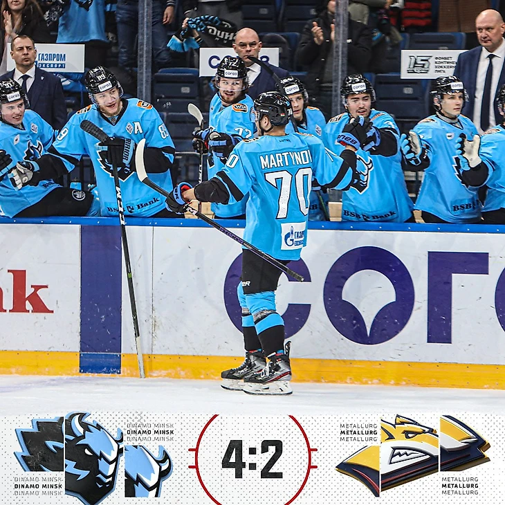 «Динамо Мнк» - «Металлург» Я угадал итог- победа хозяев. «Магнитка» плохо провела эту выездную серию - вполне возможно уже физику под плей-офф закладывают, но Илья Петрович Воробьев нам этого не расскажет;