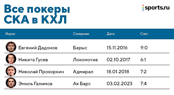 Для Галимова это первый покер КХЛ, он стал первой звездой матча и вообще набрал неплохую форму. У него уже больше очков, чем за прошлый сезон – 12 против 10. Кстати, такого сумасшедшего перфоманса от одного игрока СКА не видел целых пять лет.