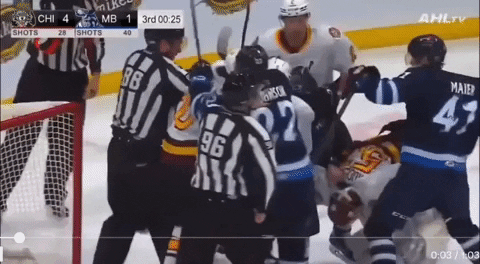 Но все же для схватки вратарю стоит выбирать соперника своего амплуа – как сделал Ярослав Аскаров в параллельном матче против «Техас Старс» (что за день такой?!). В конце игры в центре площадки возникла массовая заварушка, и голкиперы тоже решили выпустить пар – тем более, что все судьи были заняты другими делами.