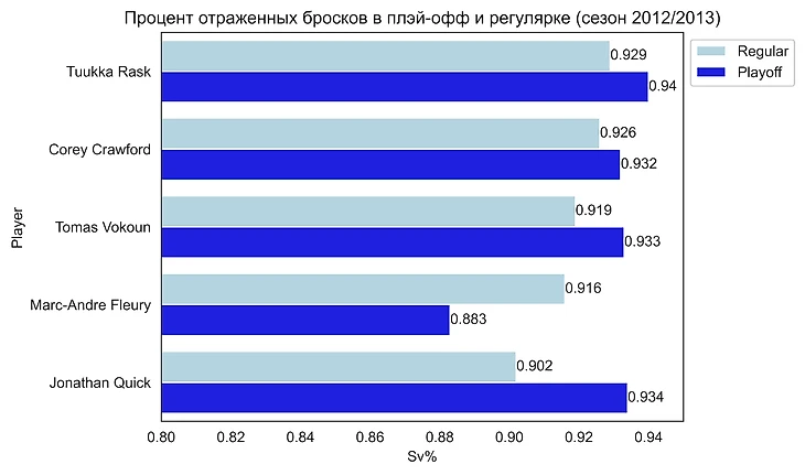 Итог: лучший в плэй-офф 2012/2013 Tuukka Rask (Sv% =0.940) проиграл в финале.