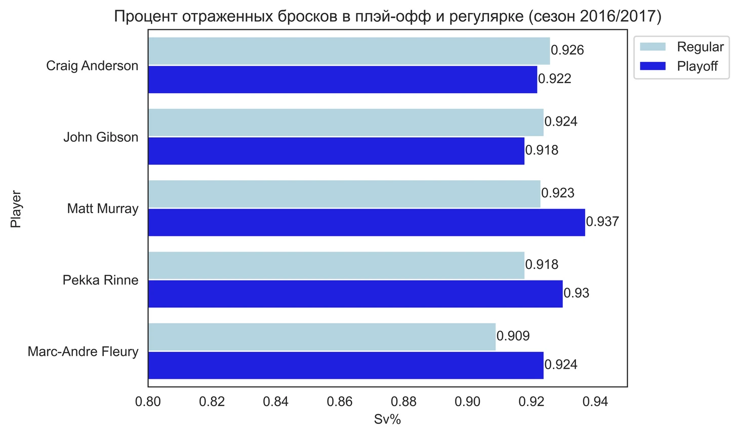 Первый топ-5 вратарей в регулярке по показателю Sv%