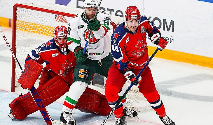 Галимов с неудобной руки отправил шайбу к воротам ЦСКА, а там не было вообще никого из казанцев.