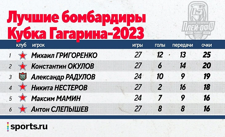Кроме него дважды лучшими бомбардирами в плей-офф становились только Мозякин и Радулов. Ничего себе компания.