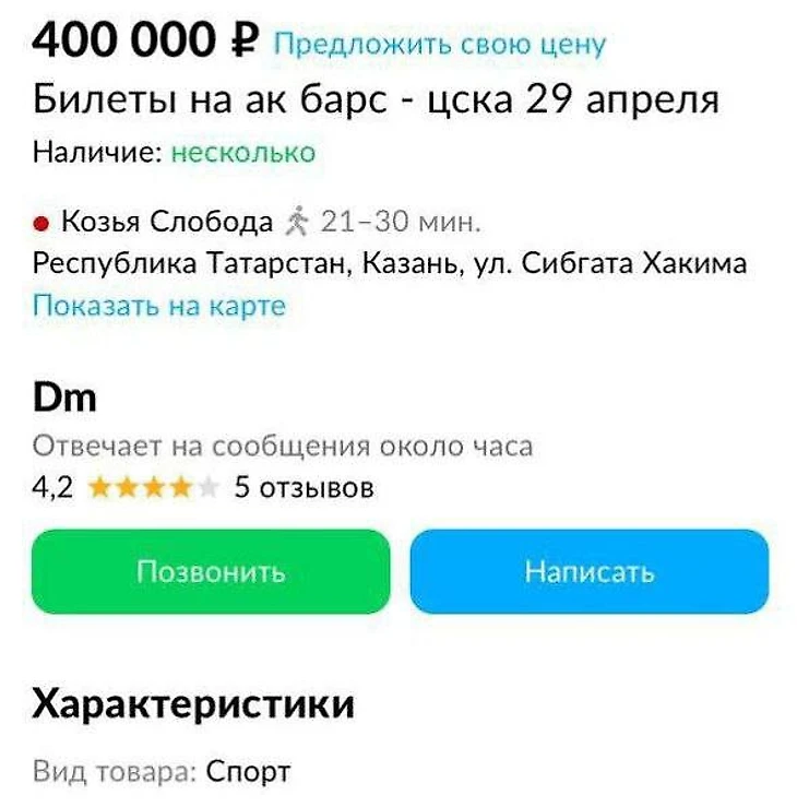 Цена билетов на официальном сайте начиналась от 2800 рублей, но у перекупов был совсем другой ценник: средняя цена на Авито – 20 тысяч, но доходило и до фантастических сумм! 400 тысяч за билет на Кубок Гагарина – неплохо, да?