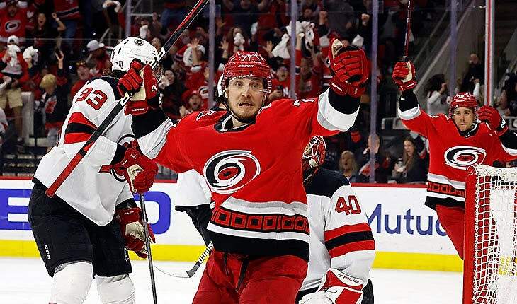 Было ощущение, что «Каролина» просела во втором периоде, но именно на этом отрезке она забила два гола – причем на первой и на последней минутах. И это, вероятно, тоже как-то могло деморализовать «Нью-Джерси» – вроде бы ты получил какое-то минимальное преимущество, начал с ним период или готовишься уйти на перерыв при 2:1, но в итоге получаешь в свои.