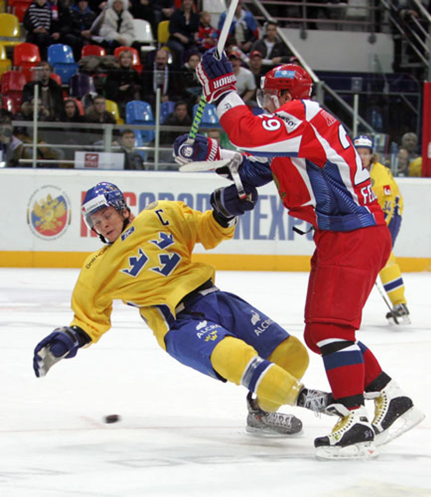 Шведы, которые так же решают подготовительные олимпийские вопросы, привезли на турнир в основном игроков КХЛ. Так что опасность, постоянно исходящая от Маттиаса Вейнхандля, для сборной России не должна была стать открытием. Но пока тренерский штаб пытался изобрести эффективный план перехвата, хитроумный швед все-таки сумел забросить сам и отдать передачу. Этим он наверняка подписал себе путевку в Канаду.
