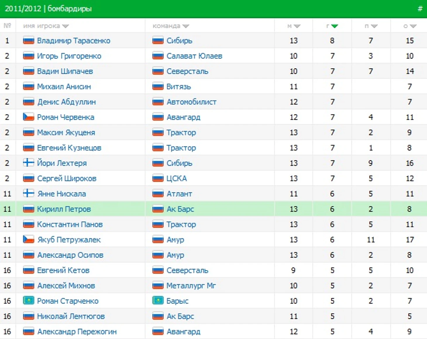Владимир Тарасенко, «Сибирь» – разыгравшийся нападающий бросился в погоню за Якубом Петружалеком, преимущество которого над российскими бомбардирами уже не выглядит таким пугающим. В игре с «Северсталью» 19-летний игрок во второй раз за неделю набрал 3 очка, приняв участие во всех голах «Сибири». И как бы невразумительно не выглядели череповчане, результат Тарасенко достоин внимания. На его счету и пятый в карьере победный гол, забитый не менее красиво, чем ряд предыдущих.