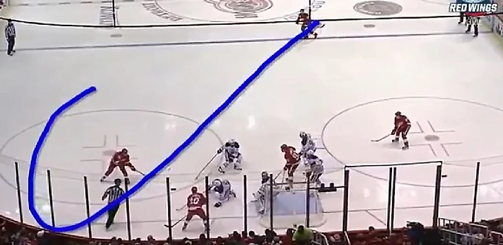 В матчах с «Калгари» и «Сент-Луисом» Дацюк очков не набирал, зато в игре с «Эдмонтоном» и забил, и отдал. В передаче на Крунвалля вроде бы ничего крутого, но если приглядеться, то это шик и блеск. Перед тем, как отдать пас под бросок защитнику, 13-й номер «Ред Уингс» заставил развернуться двух игроков «Ойлерс», чтобы те не успели помешать шведу.