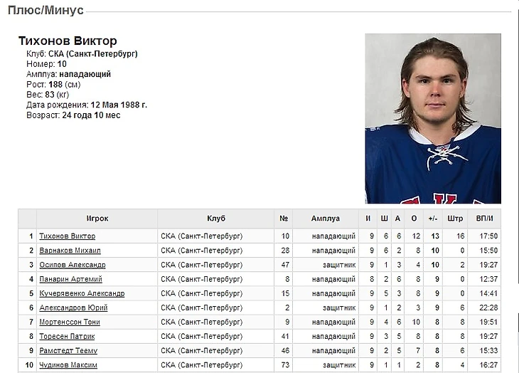 Но самая интересная картина открывается, когда в общей статистике лиги выбираешь вкладку «Плюс/Минус». Впрочем, смотрите сами. Без фотошопа: