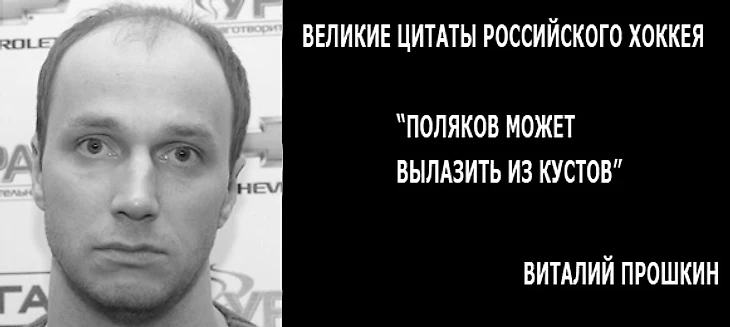 «И еще хочу передать привет господину Полякову (Александр Поляков — глава судейского комитета КХЛ — прим. Sports.ru). Битва закончилась, он может вылезать из кустов. Пускай только штанишки не забудет поменять, — сказал Прошкин в интервью «Бизнес Online».