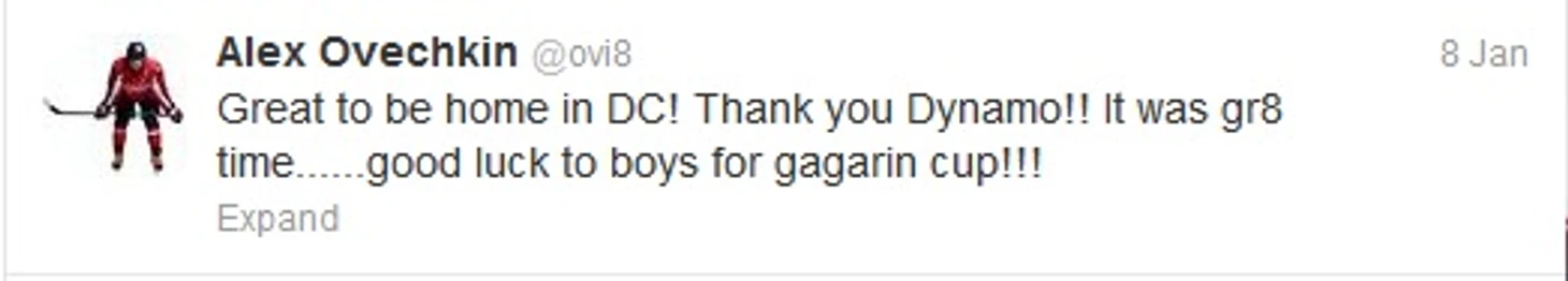 8 января. Официально локаут еще не завершен, а Овечкин уже в Вашингтоне. Осенью он едва ли не громче остальных заявлял, что может не вернуться в НХЛ, если лига не выполнит условия игроков, но, в итоге, ожидаемо уехал одним из первых. «Ковальчук и Дацюк приехали – они показали, что значит быть не только великим хоккеистом, но и настоящим мужиком», – недвусмысленно прокомментировал отказ игрока от участия в челябинском Матче звезд КХЛ Александр Медведев. По числу голосов от болельщиков Овечкин уступил только Малкину.