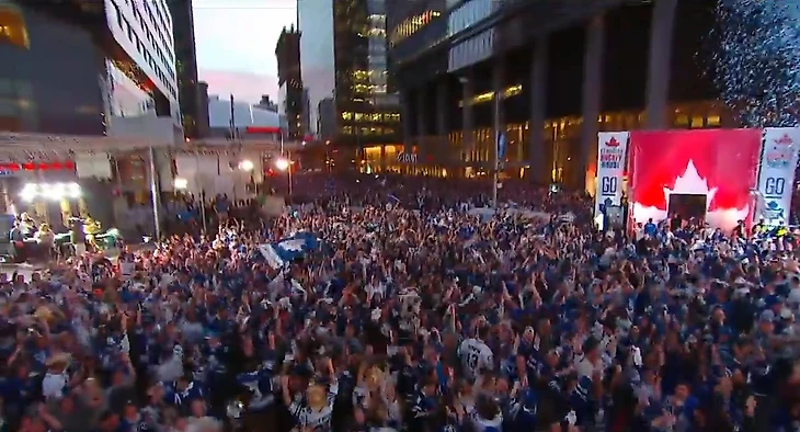 Около 20 тысяч человек бесновались возле Air Canada Center, когда Джейк Гардинер забил первый за 9 лет домашний гол «Торонто» в плей-офф.