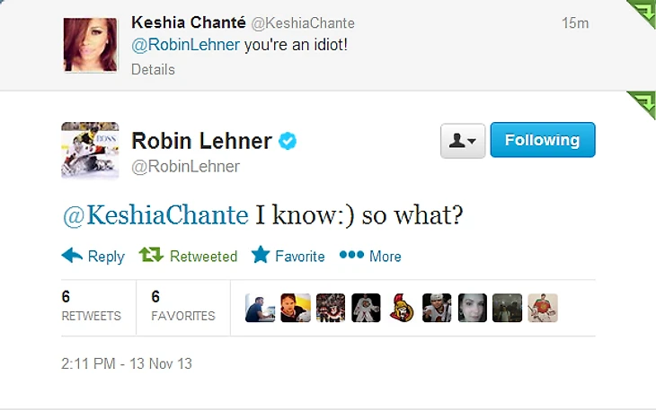 Твиттер-перепалку, которую принято называть словом созвучным с птицей грач, устроили вратарь «Оттавы» Робин Ленер и подруга Рэя Эмери Кешия Чанте. Швед в интервью журналистам сказал, что негоже, в общем, прыгать на коллег ни с того, ни с сего, и что решение дисквалифицировать Эмери напрашивалось. И началось…