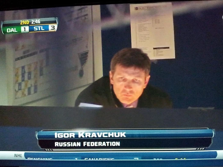 Игорь Кравчук заскочил на матч между «Далласом» и «Сент-Луисом». Игрой Тарасенко и Ничушкина он должен быть доволен.