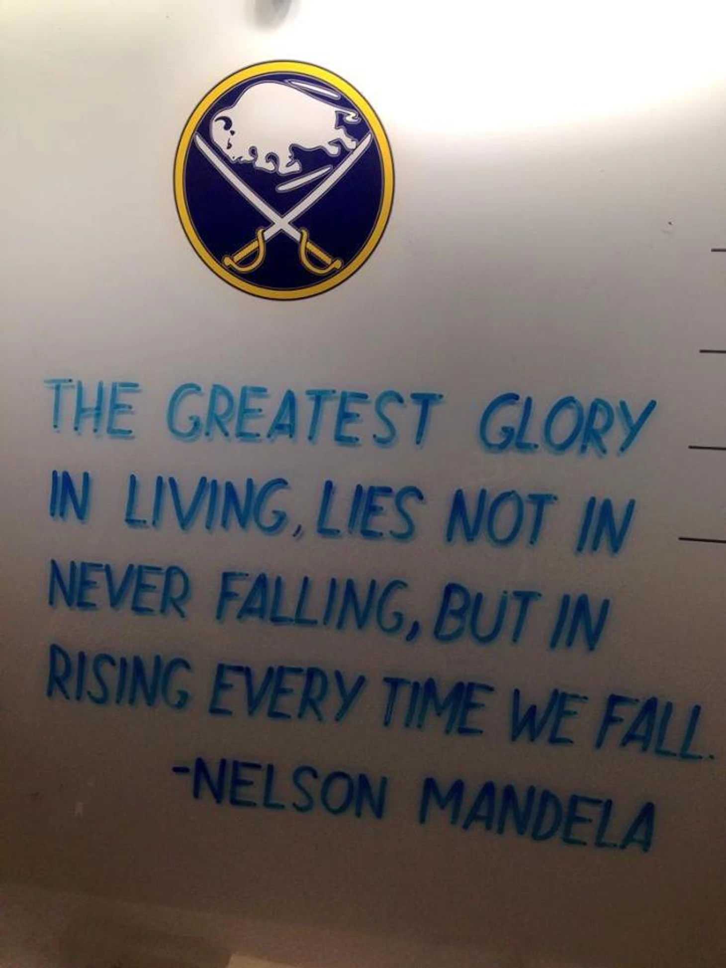 Высказывание Нельсона Манделы, которое висит в раздевалке «Баффало», чрезвычайно актуально. Куда лучше не прожить жизнь без падений, а подниматься, несмотря ни на какие трудности.