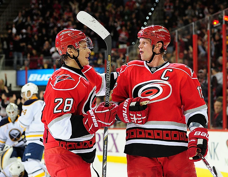 Тройка самых высокооплачиваемых нападающих «Харрикейнс» в таком составе играла разве что в большинстве, да и то изредка, но, их можно рассматривать, как единое целое, предвкушая распродажу, которая должна произойти в клубе. Выплатив в сезоне-2013/14 больше 22 миллионов долларов., «Каролина» получила от них жалкие 55 голов, хотя каждый из названных хоккеистов был способен забрасывать по 30. Семина еще как-то можно защитить травмами, но и он очнулся только к декабрю, когда у Джима Рутерфорда лопнуло терпение, и ему пришлось поговорить с хоккеистом один на один. Стаал-младший получил в «Харрикейнс» игровое время в большинстве и статус лидера, на что не мог рассчитывать в «Питтсбурге», но выхлоп оказался невпечатляющим. Зарплата Эрика непрерывно растет уже несколько лет, а результативность падает – 33 гола и 76 очков в сезоне-2010/11, 24 гола и 70 очков на следующий год, 18+35 в локаутном чемпионате и вот теперь 18+39 в 76 матчах. «Чикаго» потратил на Кэйна, Тэйвса и Шарпа меньше двадцатки, а отдача была совсем другой.