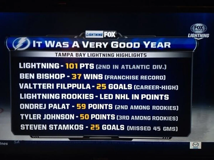 Прежде чем попрощаться с «Лайтнинг» до осени стоит поздравить команду Джона Купера пусть не с отличным, но очень хорошим сезоном. Честно, если бы утром 12 ноября, когда стало известно, что Стивен Стэмкос пропустит не меньше половины регулярки, кто-то сказал бы, что «Тампа» выйдет в плей-офф с преимуществом домашней площадки, на него посмотрели бы, как на идиота. А «молнии» не просто повторили клубный рекорд по количеству побед и набрали более 100 очков, а еще и играли в скоростной, зрелищный хоккей, дали почувствовать себя лидерами куче молодых талантов и зажгли нескольких звездочек. Купер не выиграет «Джек Адамс Трофи», но точно попадет в список претендентов, Айзерман, возможно, станет лучшим генменеджером сезона, Джонсон и Палат составят компанию Макиннону в борьбе за «Колдера», Бишоп будет третьим после Раска и Варли в списке лучших вратарей сезона. Есть чем гордиться.