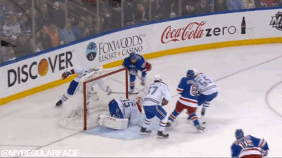 Собственно, полуминутой ранее монреальцам надо просто было сделать проброс, раз уж не получалось нормальную атаку провести, а Терьену, может быть, взять тайм аут. Но они этого не сделали, рейнджеры, похоже, этот момент усталости уловили, навалились всем звеном и использовали возможность по максимуму. Ошибка Маркова не более, чем следствие усталости в переигранной смене. То есть по сути это ошибка не Маркова, а командная ошибка (если вообще говорить об ошибках, а не о заслугах рейнджеров).