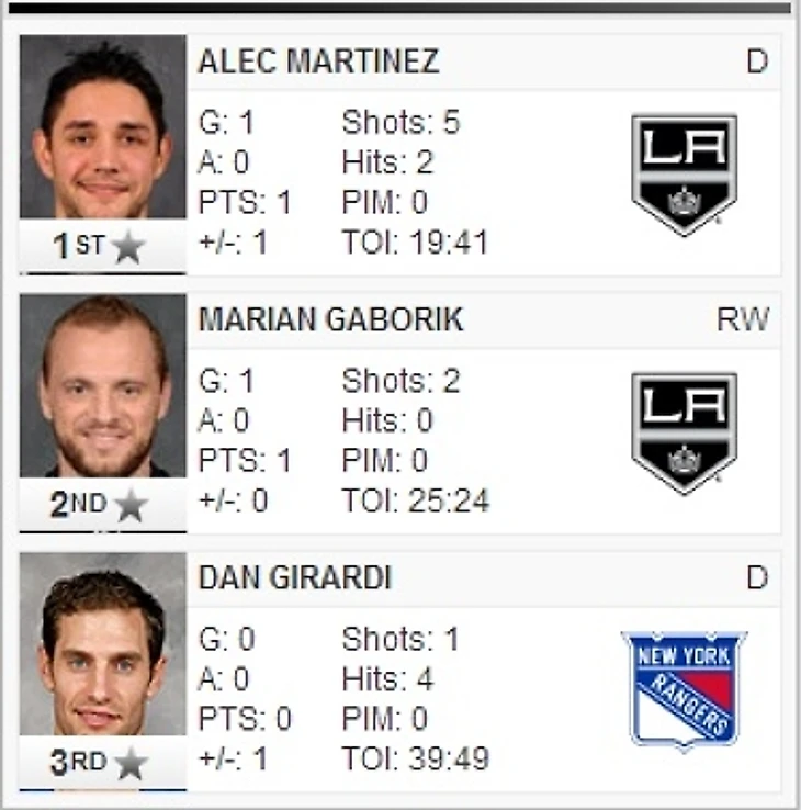 Пока Алек Мартинез осознавал, как он забил самый важный гол в своей карьере, и пытался не получить травму в куче мале, которую устроили хоккеисты «Кингс», в нескольких метрах от него, в площади ворот «Рейнджерс» лежал Хенрик Лундквист. Самый несчастный игрок финала. Сказать, что он сделал все для возрождения интриги в серии и еще одного совместного перелета команд в Нью-Йорк – значит не сказать ничего. Хэнк был феноменален, и «синерубашечники» должны были отблагодарить своего голкипера голом в овертайме. Приходилось спасать и Куику, в итоге, отбившему 28 бросков, но у него, в отличие от вратаря «Рейнджерс» были затяжные паузы, в которых он простаивал без работы. Швед пахал как лошадь все 95 минут. «Лос-Анджелес» атаковал его ворота 117 раз – 44 попытки мимо, 25 в блоки и 48 сэйвов Лундквиста.