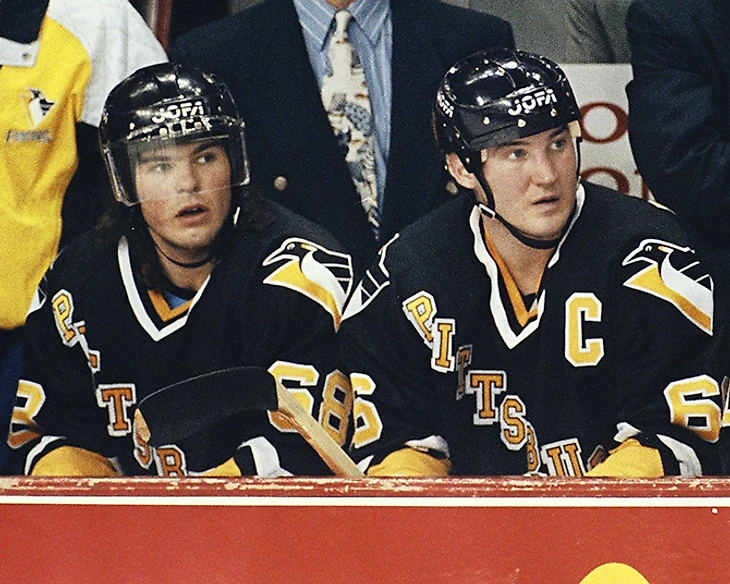 Результат: 39-32-9 в чемпионате (87 очков), 16-5 в плей-офф (победа в Кубке Стэнли)5 звезд: Марио Лемье, Кевин Стивенс, Том Баррассо, Рон Фрэнсис, Яромир ЯгрТренер: Скотти Боумэн