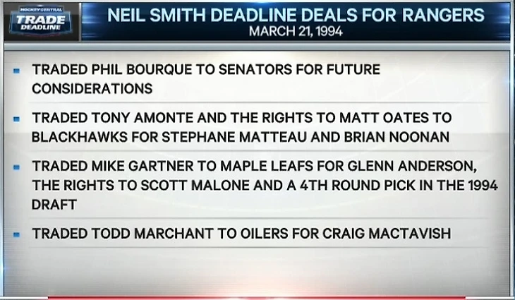 20.01 19.36 На Sportsnet, чтобы не скучать, вспоминают дедлайн-1994. Нил Смит из «Рейнджерс» тогда знатно пошумел:
