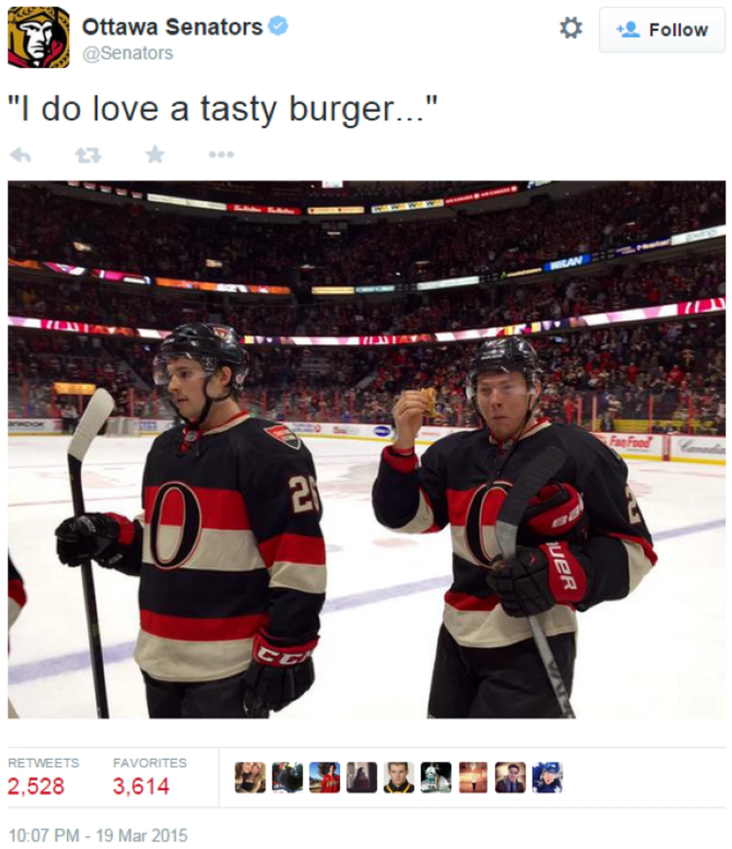 Безупречной его игру не назовешь – он пропускал несложные броски от синей линии и ошибался с отскоками шайбы. Но в сухом остатке мы имеем невероятную серию из 13 матчей подряд, в которых Хэммонду забивали меньше двух голов, и столько же побед в самое горячее для «Оттавы» время. Фанаты команды бросают на лед гамбургеры в знак благодарности Эндрю, а во время подсуетившийся «Макдональдс» предложил голкиперу по кличке Hamburglar бесплатное питание в заведениях своей сети до конца жизни. Если Хэммонду хватит эмоций на остаток регулярки, а Михалек – Туррис – Стоун, Карлссон и Мето, Зибанежад и Райан, Лазар и Хоффман вытащат «сенаторов» в плей-офф, им не придется платить за еду в лучших ресторанах города на протяжении всего лета.