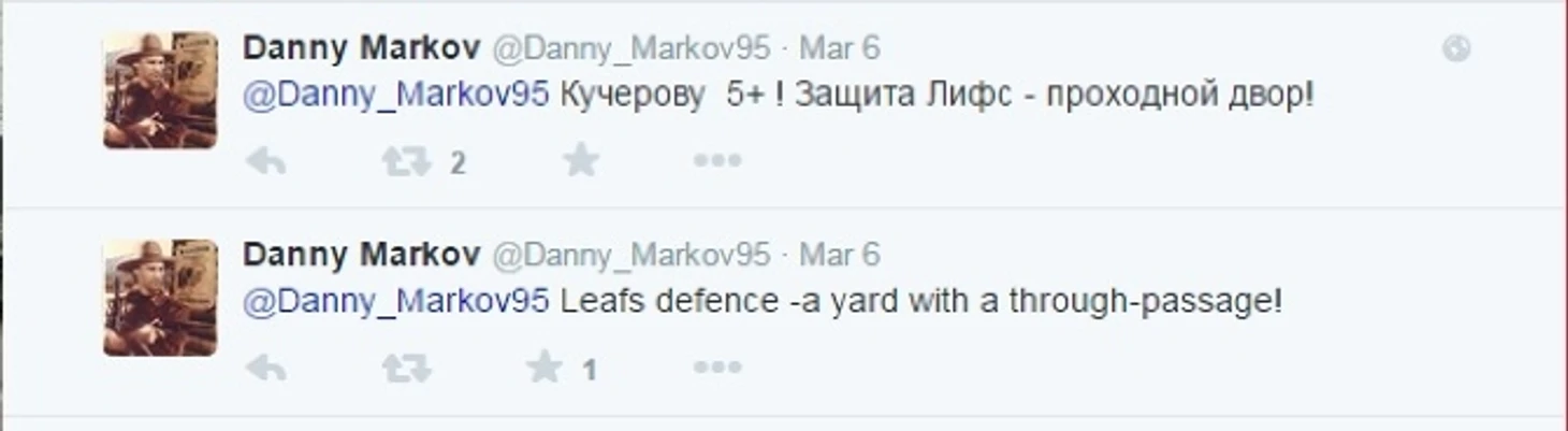 Твит от 6 марта, но его смысл совсем не устарел. В этом месяце у «Торонто» 48 пропущенных шайб в 11 матчах, а Кучеров играет на отлично.