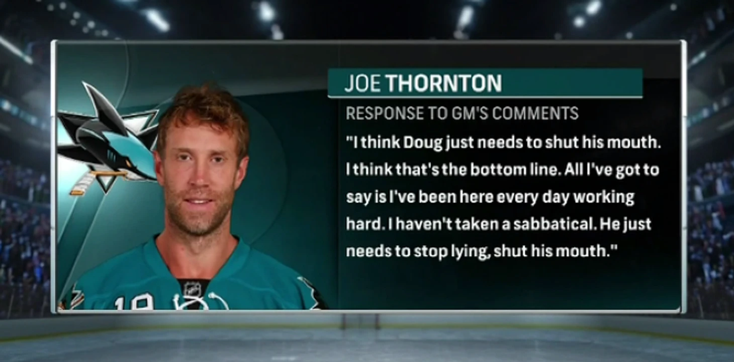 «Дагу нужно заткнуться и все тут. Ему нужно прекратить врать и просто захлопнуть свою варежку» (Джо Торнтон объясняет генменеджеру «Сан-Хосе», почему команда не в зоне плей-офф).