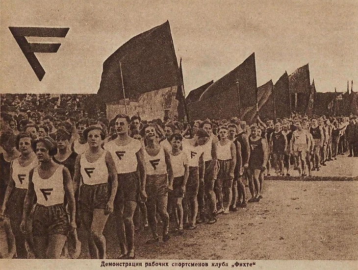 «29 июня 1930 года в Берлине мы отпраздновали сороковую годовщину существования нашего союза. 35 000 демонстрантов с пением прошли по улицам» (журнал «Физкультура и спорт» № 69-70 от 20 декабря 1930 года). «Демонстрация рабочих спортсменов клуба «Фихте» (журнал «Физкультура и спорт» № 12 от 30 апреля 1931 года)