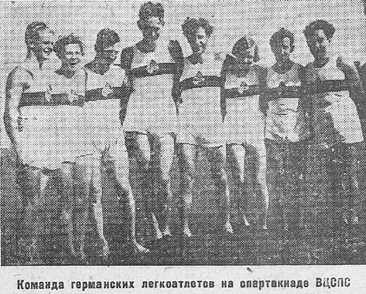 Август 1932 года. Ленинград. Первая Всесоюзная спартакиада ВЦСПС. «Команда германских легкоатлетов» (газета «Спартак» (Ленинград) № 4 за 30 августа 1932 года)