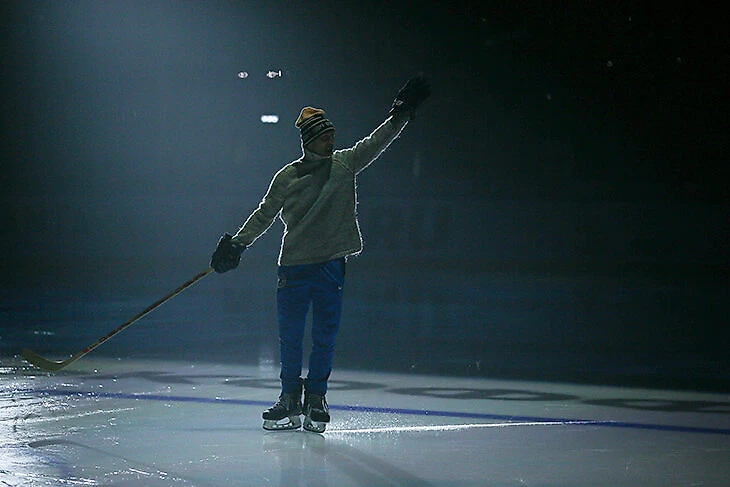 Предматчевое шоу началось за 20 минут. Многие ждали световых анимаций, но на льду неожиданно появились Егор Миловзоров и Дмитрий Затонский – местные легенды.