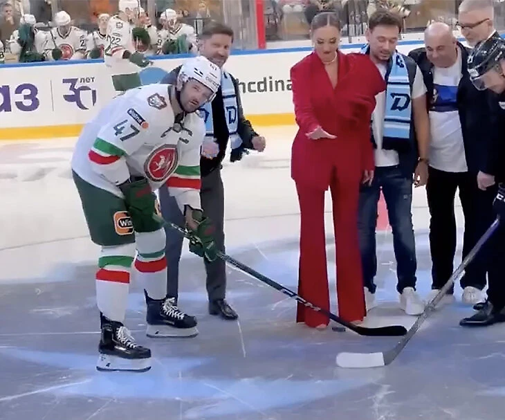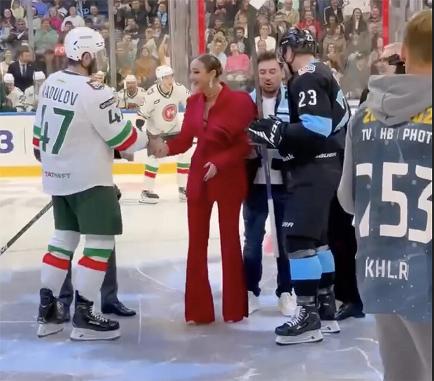 Главный хайлайт игры минского «Динамо» с «Ак Барсом» – пара предматчевых секунд. Уходя из центра площадки после символического вбрасывания, поскользнулась и упала Ольга Бузова.