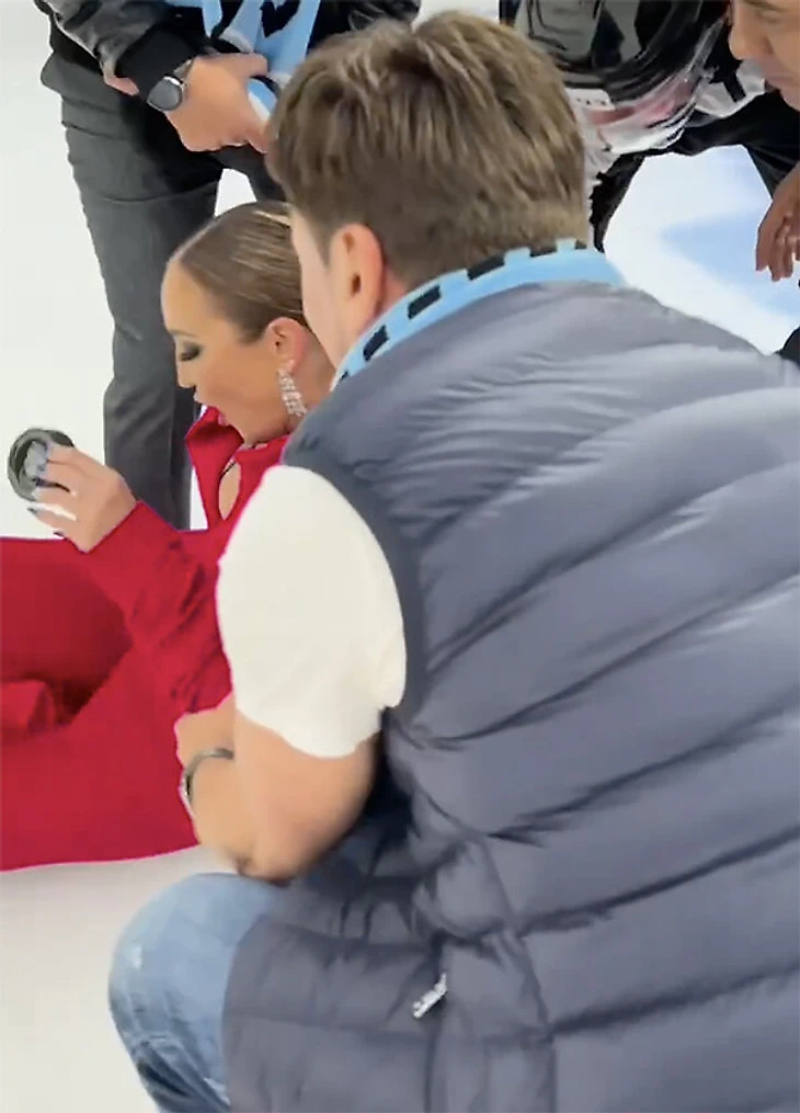 А вот когда артисты уходили со льда, все и случилось. Бузова не удержалась на ногах: сначала чуть поскользнулась, а потом настолько сильно, что упала.